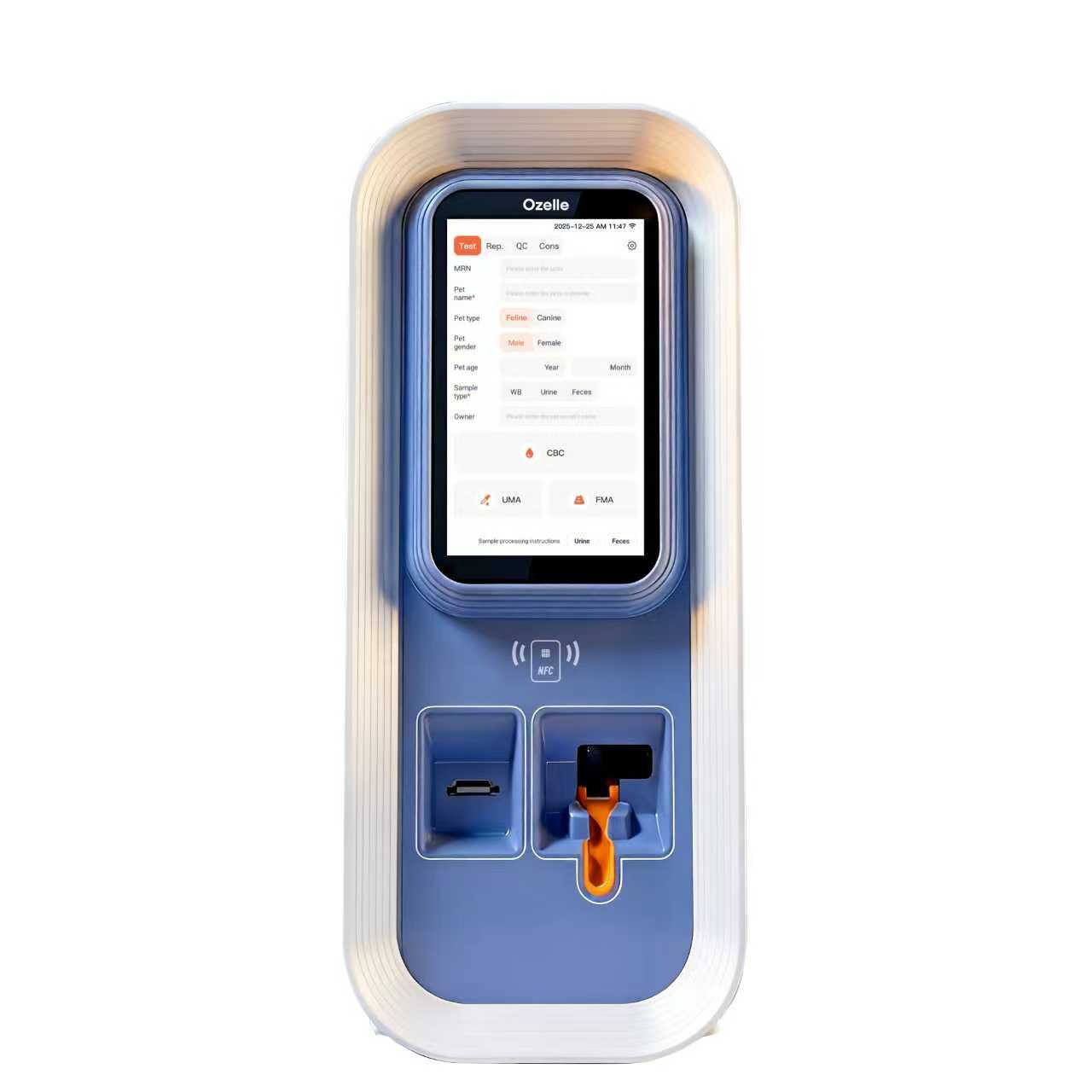 EHVT-75 Ozelle — это компактный ветеринарный анализатор 3-в-1, объединяющий 7-diff гематологию, автоматизированный анализ мочи и анализ кала на одной платформе. Прибор разработан для быстрой комплексной диагностики состояния животных в ежедневной практике ветеринарной клиники.